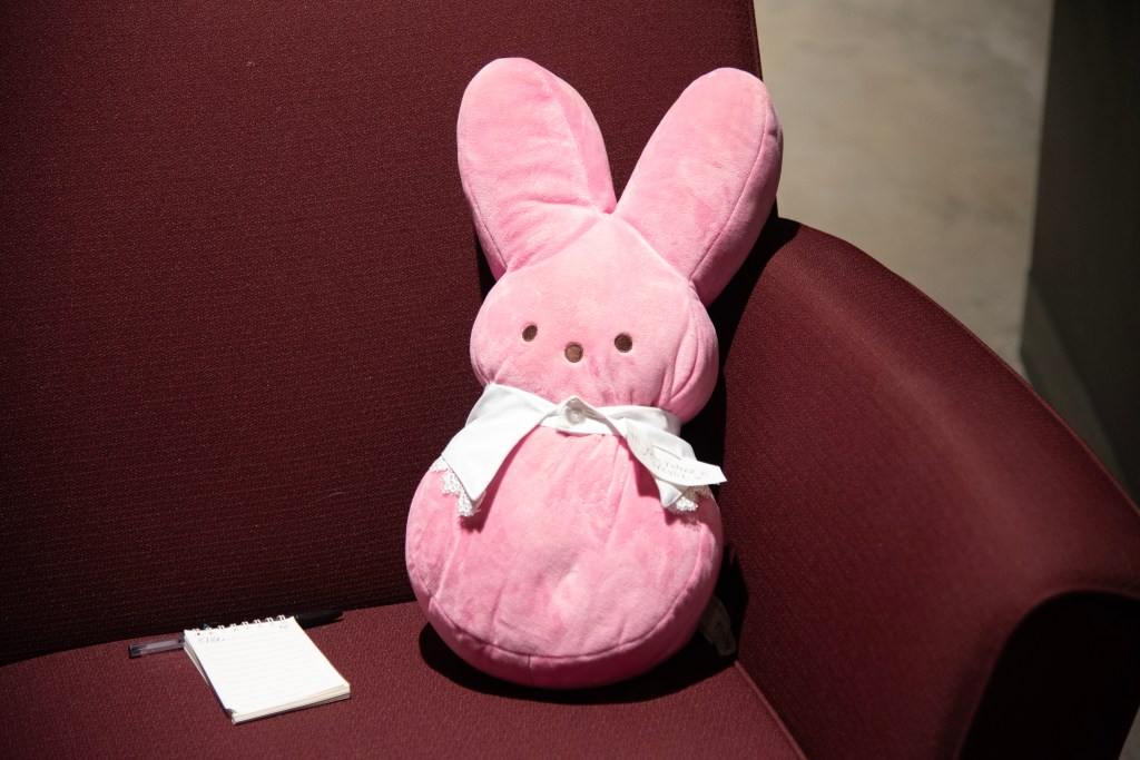 If you visited us Sunday, you might have noticed a little Easter egg hunt happening in the cafe. We hid lots of little eggs around the cafe for patrons to find. If you found one you could turn it in to your maid for a little candy prize! You might also have seen some special decorations like our new “employee” Tyler. (seen below)