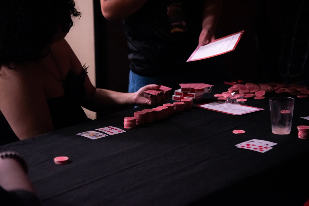 We offer a variety of games from poker to blackjack, gin rummy, yakuza dice, and more. All our games are run with no cash on the line, we take gambling legality seriously!